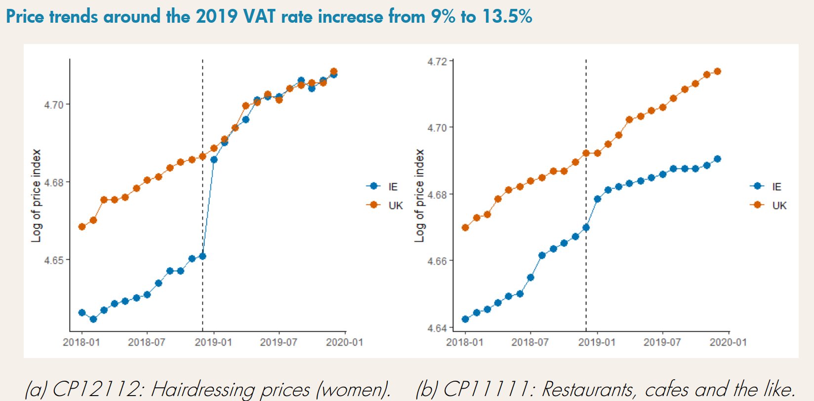 Value Added Tax (VAT) rate changes are a recurring policy tool used to raise revenue, change behaviour and regulate economic activity. However, the degree to which VAT rate changes are reflected in consumer prices—known as pass-through—varies across industries and time. Understanding VAT pass-through is crucial for evaluating fiscal policies’ effectiveness and their economic impact. Yet, little is known about their pass-through in an Irish context.